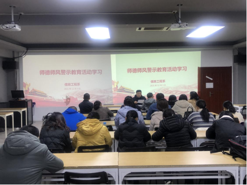 为进一步加强我系师德师风建设,严防违反师德师风问题发生。12月9日,信息工程系组织开展师德师风警示教育活动,信息工程系全体教师参加,党总支书记岳宗辉主持。