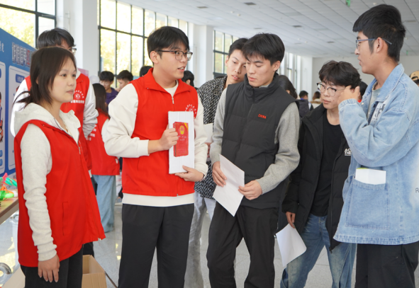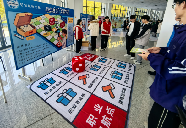 本次体验周以跨学院闯关打卡为核心框架,智能制造学院立足学科特色与行业人才需求,精心筹办“谁是卧底”推理赛、“职业盲盒飞行棋”“诈骗信息红绿灯”三项核心项目,分别通过岗位关键词推理、道具演绎互动、求职风险模拟,助力学子把握职业能力要求、熟悉工作场景、提升避险能力。活动现场,学院专属关卡人气高涨,学子踊跃参与,完成项目即可获对应印章参与校级抽奖赢取生活用品与玩偶,大厅内互动氛围热烈,洋溢着欢乐与成长的气息。