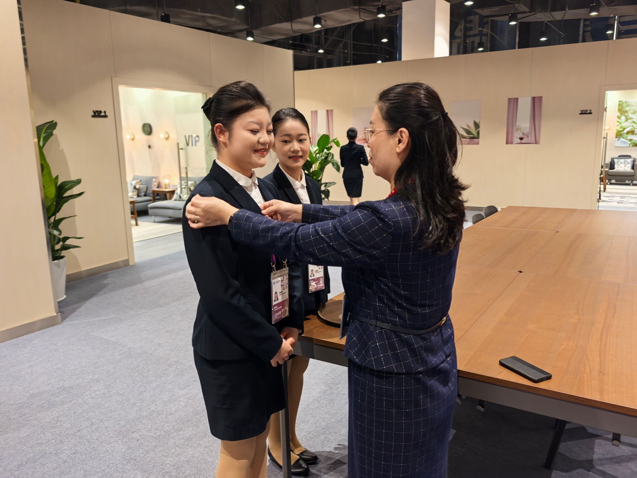 进博会期间,会场内随处可见“小叶子”们忙碌的身影。他们身着统一制服,以标准的礼仪姿态、饱满的精神状态活跃在礼宾引导、会务协调、现场保障等各个岗位,用微笑传递热情,用专业诠释担当,成为会场中一道亮丽的青春风景线。整个服务过程中,“小叶子们”以“最高标准、最严要求、最优服务”展现聊职学子的素养,并在服务过程中深入会场各个服务点位进行礼仪规范指导,帮助志愿者们及时调整状态,让学生的每一次服务都成为成长的宝贵契机。