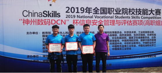 6月12日,我校信息学院计算机网络技术专业赵衍志、王忠镇、杜洪亮3名同学组成的山东省代表队参加在湖北生物科技职业学院举行的2019年全国职业院校技能大赛“信息安全管理与评估”赛项,与来自全国29个省市自治区的105支参赛队、315名选手同台对决,获得大赛团体二等奖。“信息安全管理与评估”赛项通过考查参赛选手安全网络组建,按照要求加固网络系统、安全架构、渗透测试、攻防实战等技术能力,检验参赛队计划组织和团队协作等综合职业素养,培养学生的创新能力和实践能力。