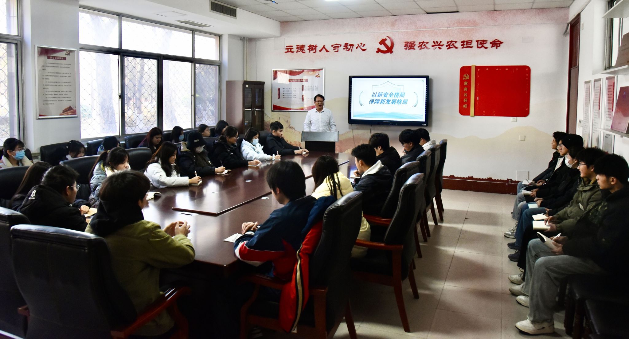12月5日,学校党委委员、统战部部长崔爱民为农牧科技系学生讲授“以新安全格局保障新发展格局”为主题的形势与政策课,推动学习贯彻党的二十大精神在农牧科技系师生中走深走实。